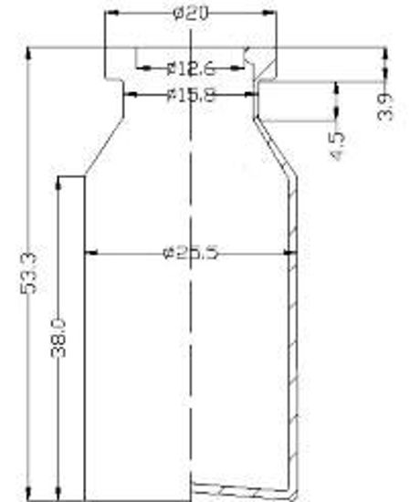 Sterile Evacuated Vial - 15 ml volume (53.3 ± 0.3 mm height and 25.5 ± 0.25 mm body diameter)