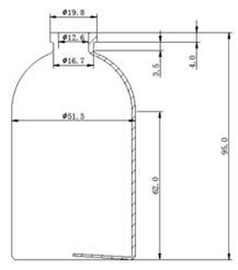 Sterile Saline-Filled Vial - 100 ml volume (95 ± 1.0 mm height and 51.5 ± 0.6 mm body diameter)