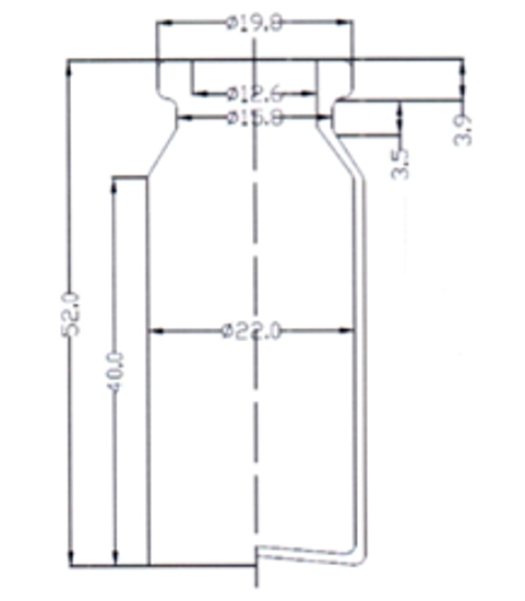 Sterile Empty Vial - 10 ml volume: 52 ± 0.5 mm height, 22 ± 0.2 mm body diameter (Clear)