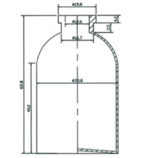 Sterile Empty Vial - 30 ml volume (62.8 ± 0.5 mm height, 35.8 mm ± 0.3 mm body diameter) (Amber)